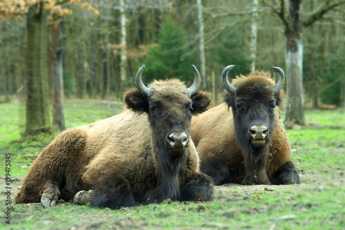 Fototapeta premium zwei Wisent, Tiere auf einer Wiese