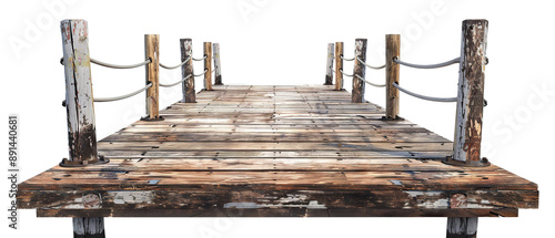 © Yeti Studio, Obraz premium Zwietrzały drewniany pomost z linowymi poręczami, wycięty