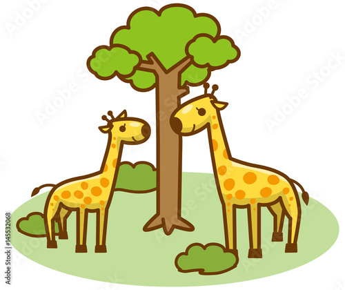 © kintomo, Fototapeta premium Żyrafa i łąka