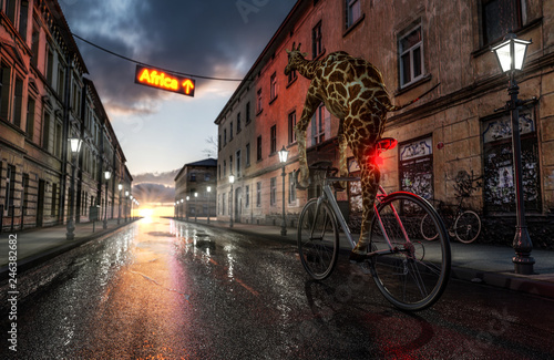 © Mediaparts, Obraz premium Żyrafa jedzie na rowerze w kierunku Afryki