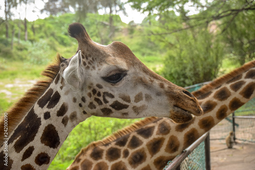 Naklejka premium Żyrafa w Tsavo East National Park w Kenii, sawanna, pustynia, Afryka, stado,...