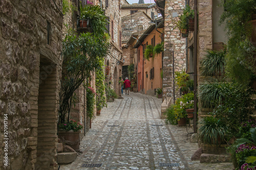 Fototapeta premium Średniowieczna aleja małej wioski Spello w Umbrii