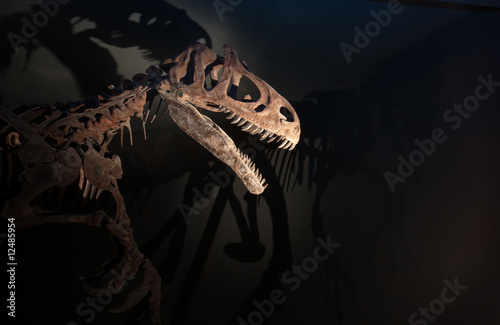 © fotofrank, Obraz premium Szkielet dinozaura z przerażającymi cieniami