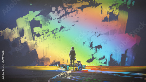 © grandfailure, Naklejka premium Tęczowy mural na ścianie