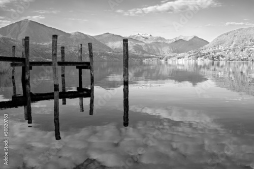 © stefanopez, Naklejka premium Widok jeziora Orta Obraz czarno-biały
