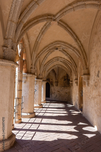 © Stefano Zaccaria, Fototapeta premium ZVIKOV, CZECH REPUBLIC, 1 AUGUST 2020: Shadows in the corridor of Zvikov Castle